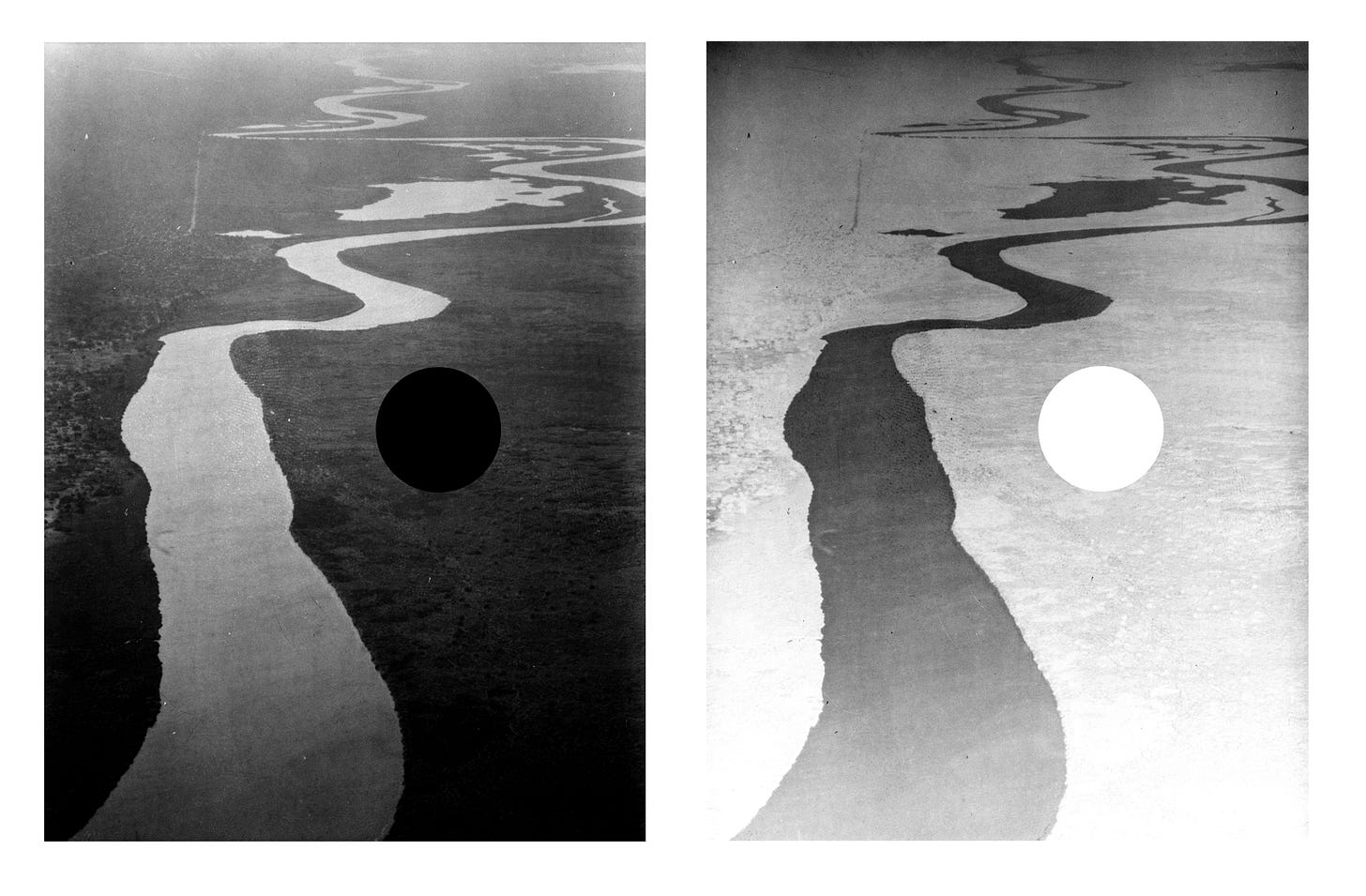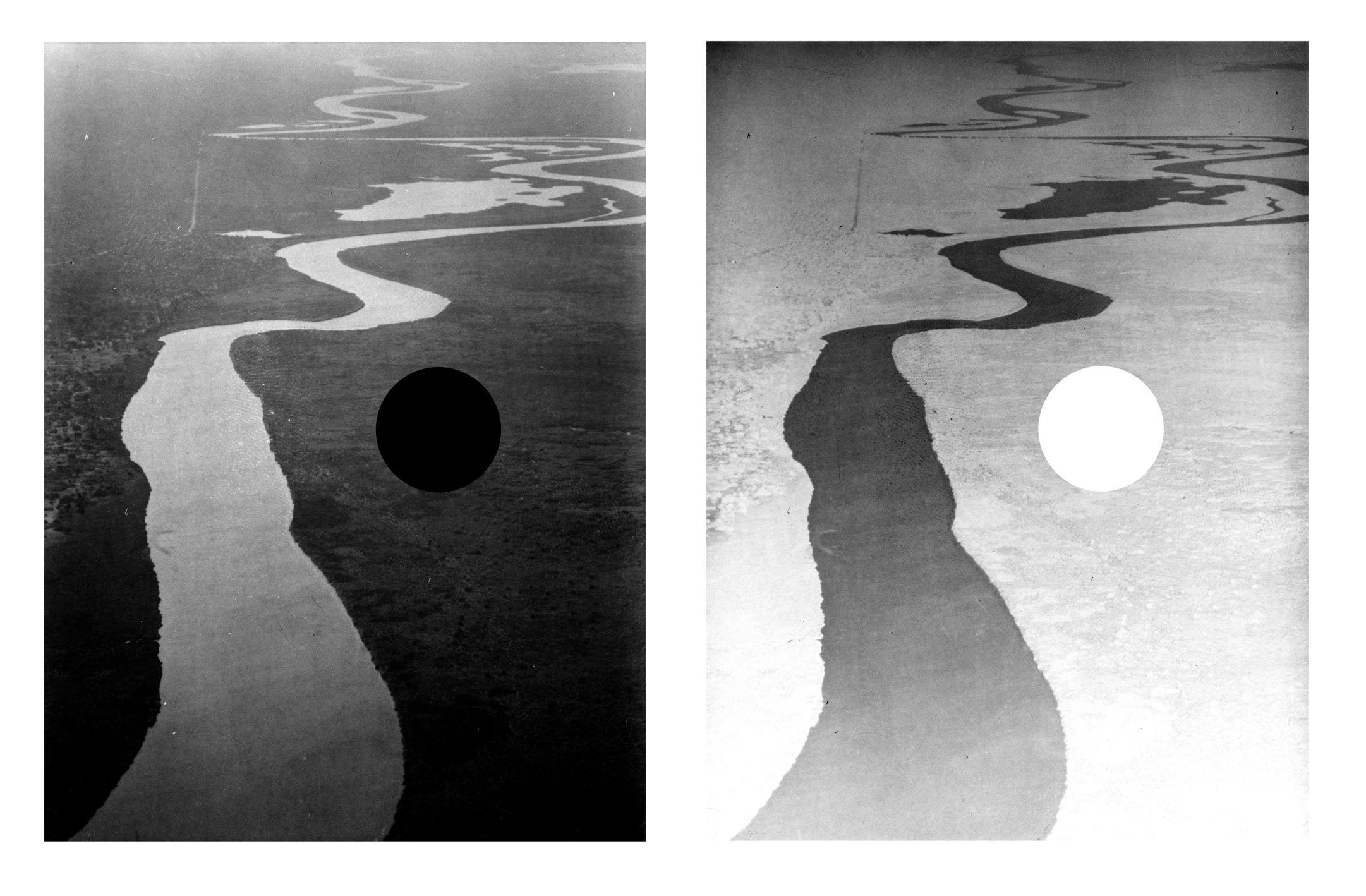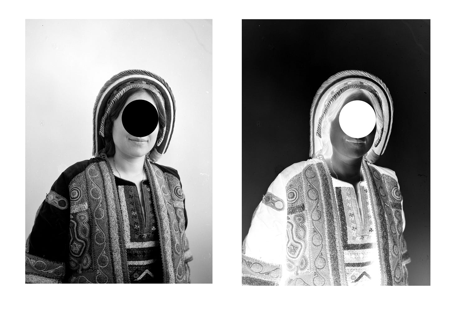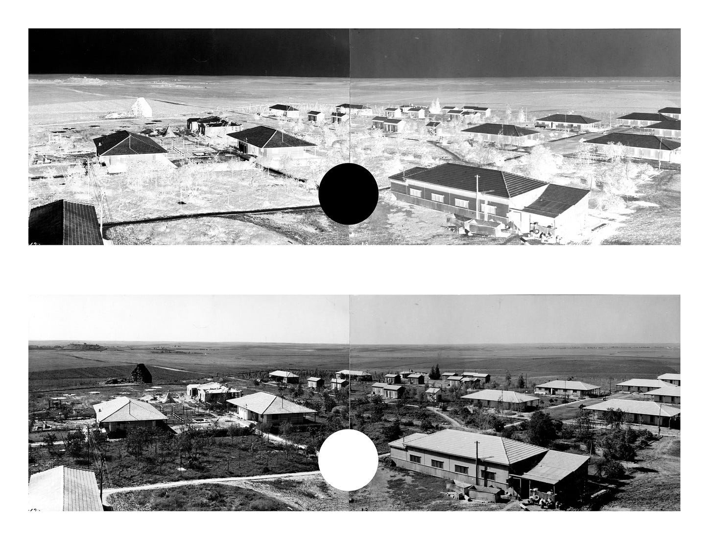 Le due fotografie presentate sono il negativo e il positivo della stessa immagine, come a rivelarne l’origine e la sua diffusione, ed entrambe sono alterate da un cerchio nero e bianco che impedisce una lettura completa delle informazioni rintracciabili nei soggetti scelti. Ogni dittico porta anche il nome della fotografia originale (Shore of the Dead Sea; Sinai; The Nile Only; Widad Ramallah Costume; Boundary Line at Rafah; Gaza Neighborhood; Gaza Jewish Settlements) e questi titoli sono rivelatori di un primo tentativo di classificare l’esistente in quei territori, come ad esprimere una fase conoscitiva e precedente alla colonizzazione, che già nell’ultimo titolo, Gaza Jewish Settlements (insediamenti ebraici a Gaza), sembra essere iniziata. Il segno circolare apposto dall’artista assume il valore di una demarcazione, una cancellazione imminente, ma allo stesso tempo appare anche come un tentativo di reclamare l’impossibilità di possedere completamente quelle foto e i soggetti che rappresentano, denunciando l’inevitabile arbitrarietà degli sguardi occidentali che hanno tentato di archiviarli e successivamente possederli.